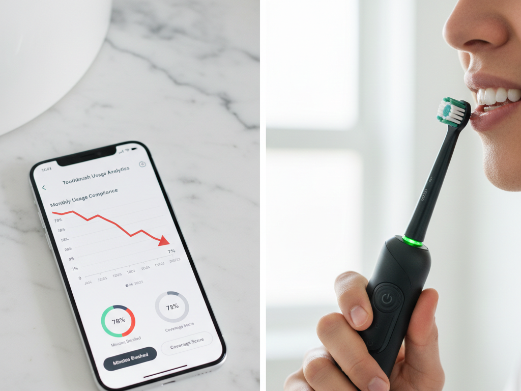 Brushing duration: Smart brush users maintained 2+ minutes. Basic brush users averaged 1:45 minutes.