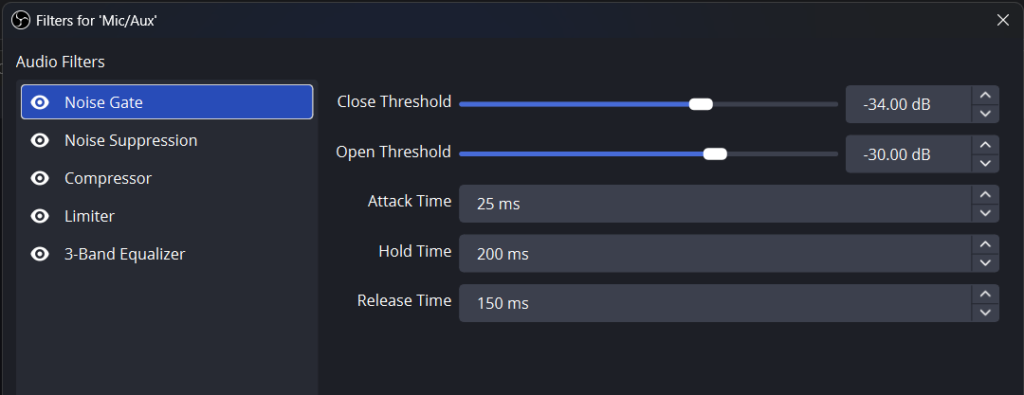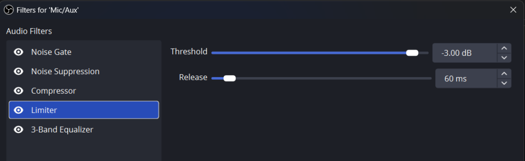 OBS Audio Filters (in order):